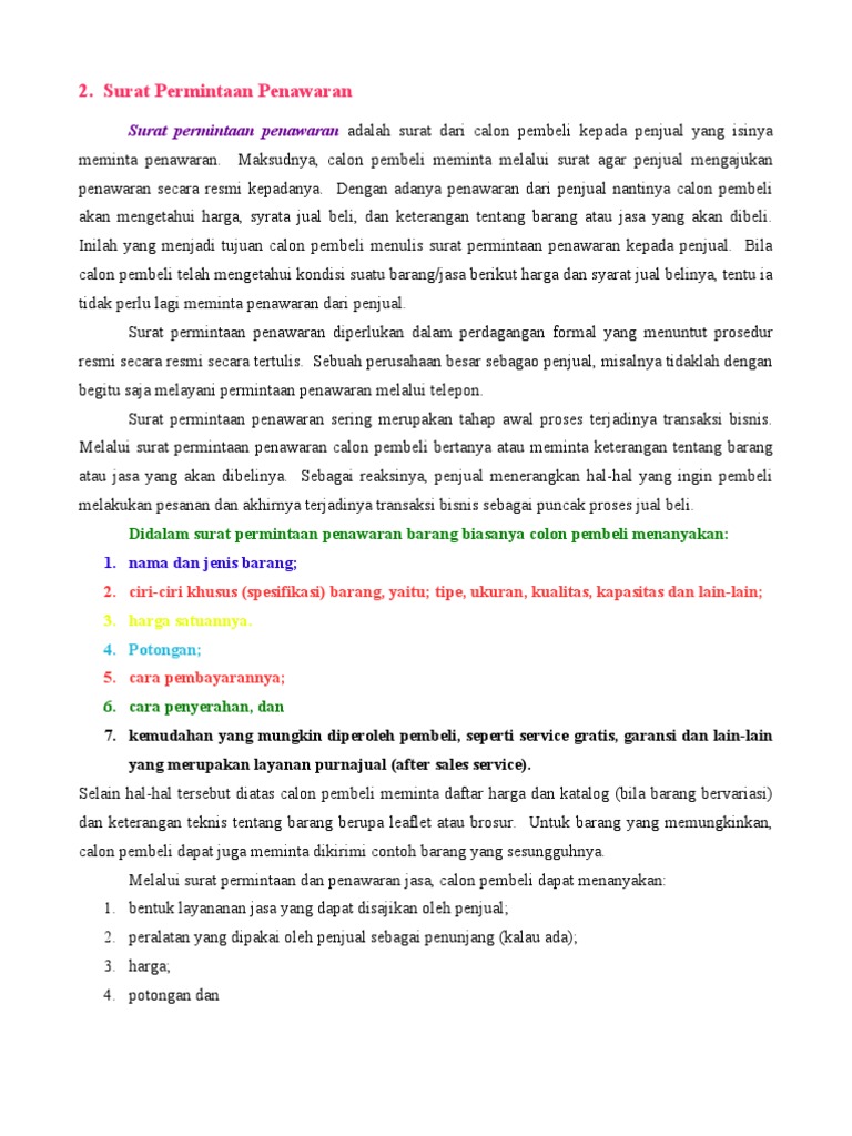 Penggunaan surat permintaan penawaran ini bukan hanya untuk mengetahui dengan detail barang yang akan anda beli. Surat penawaran ini dibuat karena ada suatu permintaan penawaran dari calon konsumen tau calon pembeli. Perlu anda tahu bahwa surat. Contoh surat niaga pengiriman barang. Demikianlah contoh dari surat permintaan penawaran barang dalam bahasa inggris. Surat tersebut memuat penjelasan mengenai barang yang sedang ditawarkan beserta rincian harganya. Oleh karena itu tak ada salahnya anda mempelajari contoh surat penawaran barang sejak sekarang. Apakah kamu sedang mencari contoh surat penawaran barang dan jasa? Contoh surat penawaran merupakan salah satu dari surat resmi yang sangat penting bagi contoh surat penawaran barang dan jasa. Setelah melihat beberapa fungsi dari surat penawaran tersebut, tentunya kita telah mengetahui bahwa surat. Kemudian, surat penawaran dikeluarkan sebagai bukti. Contoh surat niaga penawaran jasa. Surat permintaan penawaran barang merupakan surat yang digunakan untuk meminta informasi lanjut mengenai sebuah produk, jasa kami akan membayar biaya pengiriman internasional untuk bukunya.